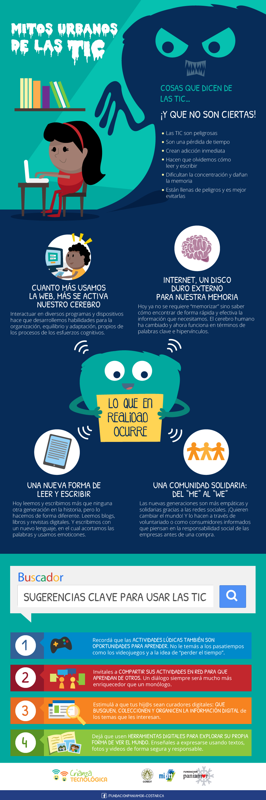 Nuestros hij@s tienen derecho a usar y estar en contacto con recursos tecnológicos. No se debe prohibir su uso, ya que constituyen una herramienta de comunicación, socialización y aprendizaje. Sin embargo, acceso no equivale a aprovechamiento. No basta con tener una computadora o un teléfono celular. Es necesario que el uso que se le da a estas tecnologías sea crítico, reflexivo, consciente e informado.