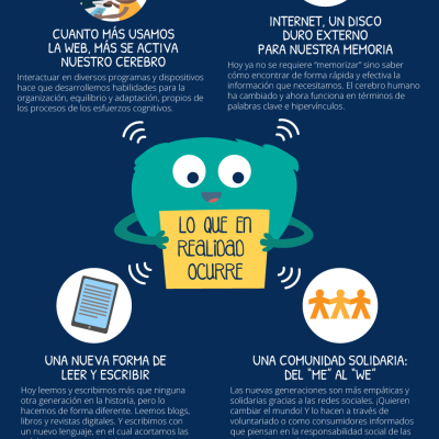 Infografía que presenta las mitos más comunes sobre las TIC, así como las ventajas de su uso....